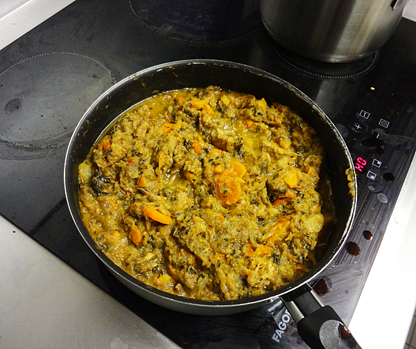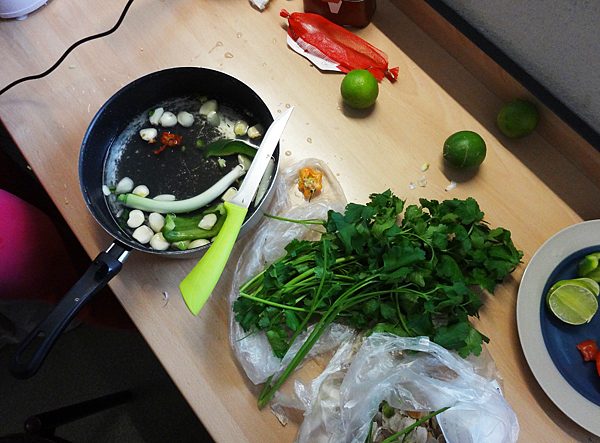 最簡單也最偷懶的做法,就是把它想像成綠色版的咖哩醬來煮(當然味道完全不一樣),但是是加了檸檬汁的版本!